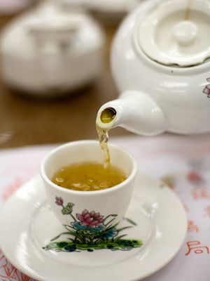 无论男女老少都喜欢在周末休闲的时候,慢慢地泡一壶茶,享受假日的休闲。不过,不是每个人都适合喝茶养生的。我们来看一下,哪些状况下的我们需要和茶叶隔离起来。![]() 1.发烧忌喝茶 茶叶中咖啡碱不但能使人体体温升高,而且还会降低药效。 2.肝脏病人忌饮茶 茶叶中的咖啡碱等物质绝大部分经肝脏代谢,若肝脏有病,饮茶过多超过肝脏代谢能力,就会有损于肝脏组织。 3.神经衰弱慎饮茶 茶叶中的咖啡碱有兴奋神经中枢的作用,神经衰弱饮浓茶,尤其是下午和晚上,就会引起失眠,加重病情,可以在白天的上午及午后各饮一次茶,在上午不妨饮花茶,午后饮绿茶,晚上不饮茶。这样,患者会白天精神振奋,夜间静气舒心,可以早点入睡。 4.孕妇忌饮茶,尤其是不宜喝浓茶 茶叶中含有大量茶多酚、咖啡碱等,对胎儿在母腹中的成长有许多不利因素,为使胎儿的智力得到正常发展,避免咖啡碱对胎儿的过分刺激,孕妇应少饮或不饮茶。 ![]() 5.妇女哺乳期不宜饮浓茶 哺乳期饮浓茶,过多的咖啡碱会进入乳汁,小孩吸乳后会间接的产生兴奋,易引起少眠和多啼哭。 6.溃疡病患者慎饮茶 茶是一种胃酸分泌刺激剂,饮茶可引起胃酸分泌量加大,增加对溃疡面的刺激,常饮浓茶会促使病情恶化。但对轻微患者,可以在服药2小时后饮些淡茶,加糖红茶、加奶红茶有助于消炎和胃粘膜的保护,对溃疡也有一定的作用。饮茶也可以阻断体内的亚硝基化合物的合成,防止癌前突变。 7.营养不良忌饮茶 茶叶有分解脂肪的功能,营养不良的人,再饮茶分解脂肪,会使营养更加不良。 8.醉酒慎饮茶 茶叶有兴奋神经中枢的作用,醉酒后喝浓茶会加重心脏负担。 饮茶还会加速利尿作用,使酒精中有毒的醛尚未分解就从肾脏排出,对肾脏有较大的刺激性而危害健康。因此,对心肾生病或功能较差的人来说,不要饮茶,尤其不能饮大量的浓茶;对身体健康的人来说,可以饮少量的浓茶,待清醒后,可采用进食大量水果、或小口饮醋等方法,以加快人体的新陈代谢速度,使酒醉缓解。 ![]() 9.慎用茶水服药 药物的种类繁多,性质各异,能否用茶水服药,不能一概而论。 茶叶中的鞣质、茶碱,可以和某些药物发生化学变化,因而,在服用催眠,镇静等药物和服用含铁补血药、酶制剂药,含蛋白质等药物时,因茶多酚易与铁剂发生作用而产生沉淀,不宜用茶水送药,以防影响药效。 有些中草药如麻黄、钩藤、黄连等也不宜与茶水混饮,一般认为,服药2小时内不宜饮茶。 而服用某些维生素类的药物时,茶水对药效毫无影响,因为茶叶中的茶多酚可以促进维生素C在人体内的积累和吸收,同时,茶叶本身含有多种维生素,茶叶本身也有兴奋、利尿、降血脂、降血糖等功效,对人体可增进药效,恢复健康也是有利的。另外,在民间常认为服用参茸之类的补药时,也不宜喝茶,也有一定的道理。 10.贫血患者忌饮茶 茶叶中的鞣酸可与铁结合成不溶性的终合物,使体内得不到足够铁的来源,故贫血患者不宜饮茶。 11.尿结石患者忌饮茶 尿路结石通常是草酸钙结石,由于茶含有草酸,会随尿液排泄的钙质而形成结石,若尿结石患者再大量饮茶,会加重病情。 12.忌空腹饮茶 空腹饮茶会冲淡胃酸,还会抑制胃液分泌,妨碍消化,甚至会引起心悸、头痛、胃部不适、眼花、心烦等“茶醉”现象,并影响对蛋白质的吸收,还会引起胃粘膜炎。若发生“茶醉”,可以口含糖果或喝一些糖水可以缓解。 ![]() 13.忌饭前后大量饮茶 饭前后20分钟左右不宜饮茶,若饮茶,会冲淡胃液,影响食物消化,而且因为茶中含有草酸,草酸会与食物中的铁质和蛋白质发生反应,影响人体对铁和蛋白质的吸收。 14.忌睡前饮茶 睡前2小时内最好不要饮茶,饮茶会使精神兴奋,影响睡眠,甚至失眠,尤其是新采的绿茶,饮用后,神经极易兴奋,造成失眠。 15.忌饮隔夜茶 饮茶以泡现饮为好,茶水放久了,不仅会失去维生素等营养成分,而且易发馊变质,饮了易生病。 16.忌饮头道茶 因为现代茶叶在种植、加工、包装的过程中难免会受到农药、化肥、尘土等物质的污染。头道茶其实是洗茶的水,应尽快到出后再冲入开水,这样泡出的茶水才是最卫生的茶。 17.忌饮用劣质茶或变质茶 茶不易妥善保管,易吸湿而霉变,而有些人出于爱茶节约,舍不得丢弃已霉变的茶。变质的茶中含有大量对人体有害的物质和病菌,是绝对不能饮用的。优质茶泡好后若放置太久,茶汤也会因氧化和微生物而繁殖而变质,这样的茶亦不可再饮用。 ![]() 18.儿童不宜喝浓茶 因为茶叶浓度大时,茶多酚的含量太多,易与食物中的铁发生作用,不利于铁的吸收,易引起儿童的缺铁性贫血。儿童可以适量喝一些淡茶(为成人喝的茶浓度的三分之一)。对于学龄前儿童可以喝一些粗茶,因粗茶中茶多酚含量较低。 19.冠心病患者谨慎喝茶 对于心率过快、早搏或心房纤颤的冠心病者,因茶中的咖啡碱、茶碱都是兴奋剂,能增强心脏的机能,大量喝浓茶会使心跳加快,往往会导致其发病或加重病情,因此这类人只能喝一些淡茶;与此相反,心率一般在60次/分钟以下的患者,应该多喝一些茶,不仅无害,反而能提高心率,有配合药物治疗的作用。 20.老年人不宜饮生茶 所谓生茶是指杀青后不经揉捻而直接烘干的烘青绿茶。这种茶的外形自然绿翠,内含成分与鲜叶所含的化合物基本相同,低沸点的醛醇化合物转化与挥发不多,香味带严重的生青气。老年人饮了这种绿茶,对胃粘膜