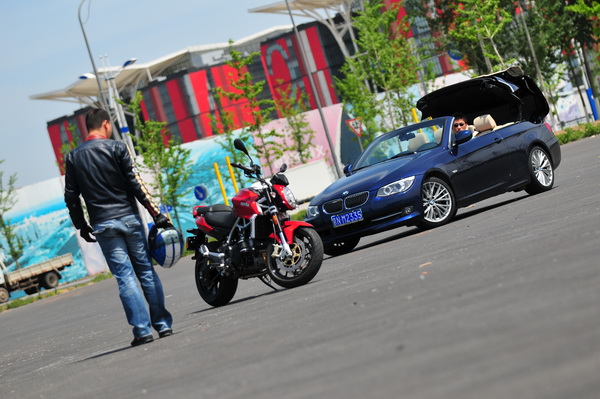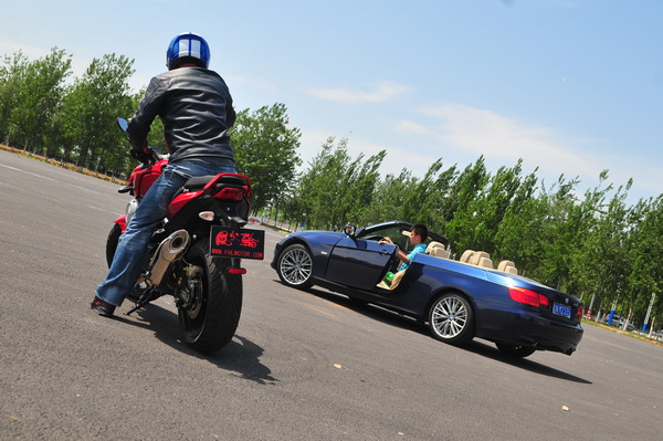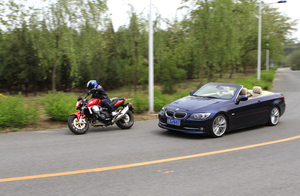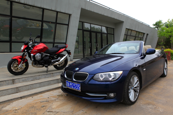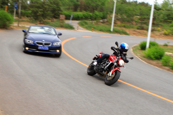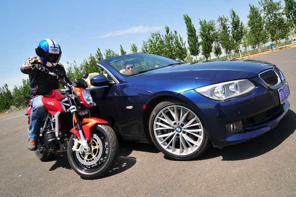 ![]() 自排主义的中级健将 Mana 850 v.s 335i Cabrio对比测试 Aprilia和BMW都是来自欧洲的车厂,Aprilia在意大利是仅次于杜卡迪的摩托车厂,BMW追求运动性的造车理念也在德国三巨头当中独树一帜,今天秀车网编辑部将带大家去领略一下Aprilia Mana 850和BMW 335i Cabrio的风采,到底哪家更胜一筹请看下文… BMW我想就不用过多介绍了,对于Aprilia这个品牌也许有的读者还不是很了解。Aprilia是一家来自意大利的摩托车厂商,一直参加GP250(Moto2)和GP125(Moto3)的赛事,并且多次获得年度厂商冠军,旗下超级跑车RSV4更是名声显赫,曾在2010年的世界超级摩托车锦标赛(WSBK)赛事中获得了年度总冠军。 ![]() Aprilia名气虽不如杜卡迪Ducati,但是在欧洲还是有着非常多的拥护者。 当然今天我们要介绍的并不是在赛道上叱诧风云的超跑,今天的主角是两家的自动档休闲车款Mana 850和335i Cabrio。这两款车的共性就是都采用了7速变速箱(一则为7速CVT、一则为7速DCT),而且定位都偏重休闲,但是却都有一定的战斗力。并非毫无斗志的车款。 ![]() 两者同为7速变速系统,除了结构不同之外,表现也截然不同。 都市实用性及灵活性比较-Mana 850灵巧动态胜出 对于刚刚拿到驾照,或者大排量摩托车驾驶经验不足的骑士,Mana 850的CVT变速箱就再适合不过了,省去了离合器与档位的操作,可以把所有的注意力放在路况和油门刹车控制上,以免频繁换挡将自己弄得手忙脚乱。而且CVT变速箱所带来的顺畅性是手挡车无法比拟的。Mana 850所带来的这种“奢侈”对于宝马335i来说并不算什么,因为宝马的DCT则配置了双离合变速箱,平顺性也相当出色,同时传输也更直接。 ![]() Mana850在行驶中不会感到任何的换挡冲闯感,在压弯的时候除了稳住油门没有其他操作了。 Mana 850的变速箱分成手动变速模式和三种自动模式,手动模式换挡可以采用左手开关总成上的换挡拨片,也可使用传统的左脚换挡杆,虽然Mana 850没有转速表,但是有专为手动模式准备的换挡指示灯,分为黄色指示灯和红色指示灯,为追求激进驾驶感受的骑士显示最佳换挡时机。自动模式就更适合所有的骑士了,分为低摩擦力(Rain)、旅行(Touring)、运动(Sport)三种模式,低摩擦力模式的油门响应和动力输出都会受到一定的制约,以保证轮胎足够的抓地力,旅行模式则是既能保证流畅性又比较安全的全能选择。所谓的运动模式,并没有感觉到什么过人之处,仅仅是相应更迅速了一点点,仅此而已!以上介绍过的手动模式还有三种自动模式动力表现都很平顺,对于初学者或者喜欢闲庭信步的休闲骑士是最佳选择,更不会出现大排量手动档因操作不当发生翘前头的现象,再凭借其两轮摩托车先天的车身尺寸优势,无论任何路段、任何时段,几乎不可能有把Mana 850堵在路上的可能性。 ![]() 多功能液晶表显示项目繁多,需要一段时间才能完全上手掌握。 相比较宝马335i的4.6米车长和接近两米的宽度,在车阵当中,灵巧便利性实在难以相提并论,不过宝马这套DCT变速箱还是值得称道的,采用双离合器7档变速配置,换挡迅速,动力衔接流畅,而且还能承受400牛顿米的扭力,可谓是E92 M3的M-DCT变速箱的简化版,在使用方向盘后面的拨片换挡装置后马上就可以从自动模式(D)瞬间转换到手动模式(M),可以随时满足偶尔兴起的驾驭激情,只要想到就可以马上做到。总体来讲这套名叫DCT的7速双离合变速箱配合硬顶折叠的335i可谓门当户对,既不奢侈,也不勉强。 ![]() 对于都会巷弄来说,Mana 850与335i Cabrio更有擅长之处,但以灵巧机动性来说,摩托车当然更胜一筹。 繁华喧闹的市区可能不需要太过强悍的发动机,但是随时随地都可以享受蓝天和阳光的硬顶折叠敞篷设计绝对是亮骚的利器,不过也失去了后备箱的储物空间,同时也增加200公斤重量对于操控的影响,有得必有失,这都是可以接受的。但是有一个问题略显美中不足,就是硬顶折叠敞篷的开合必须在车辆完全停下的状态完成,虽然是基于安全的考量,但假设你正在市区环线上堵车,此时飘来一阵细雨,车辆走走停停无法完全停下关闭硬顶敞篷而被雨浇的狼狈不堪,周围汽车原本投来的羡慕、嫉妒、恨瞬间变成了幸灾乐祸,这可是谁也不想碰到的事情啊。 ![]() 335i的硬顶折叠敞篷真是让人爱不释手,而且回头率100%。 摩托车的优势一览无遗,宝马的敞篷在北京空气质量不佳的情况下有点不够实用,而且没有低速行驶关闭车顶的功能,所以两车在遇到下雨的情况下都会有一定的麻烦,总体来说Mana 850的优势更为明显,在第一回合的比较当中胜出。 ![]() Mana850采用倍耐力 Angel ST 180/55 ZR17规格轮胎,抓地力自然出色 中低速域Mana850领先,高速宝马完胜 考虑到偏重于休闲的设计,Mana 850并没有采用旗下最强的发动机技术,839.3ml排量的V2发动机为了配合CVT变速箱的输出负荷,马力仅有75匹,实在没有什么可以夸耀的地方,宝马这台发动机是近几年才开始使用直列6缸3.0升双涡流单涡轮增压发动机,不过也已经经历过几次小改进了,目前在3系、5系、6系、7系、X3、X5、X6、Z4车型当中都有使用。 ![]() Mana850发动机非常环保,但是性能还是以平顺著称。 宝马335i的加速相当出色,但是涡轮延迟相对比较明显,油门响应也慢了半拍,这就是为什么扭矩数据更漂亮的335i(400牛顿/米,1200-5000转)永远追不上M3(400牛顿/米,3900转)的最终原因,但是两车差价20万也注定了335i不可能是M3的对手。言归正传,335i性能虽不及M3,但是相