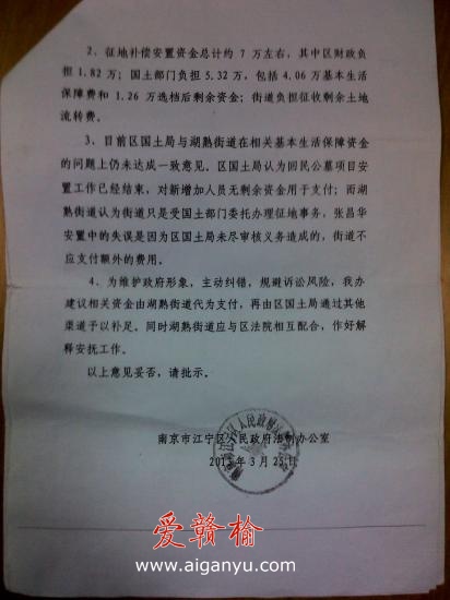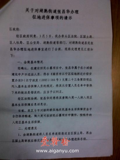 | 南京江宁副区长,你的批示被湖熟街道踢皮球了作者:张昌华 发布时间:2013-05-29 09:21 类别:百姓权益 区域:南京江宁 咨询求助: 江宁副区长王磊,有人喊你出来“管事”! 江宁区湖熟街道新跃社区十六组村民张昌华、陶六英家庭承包的3.79亩土地,2009年期间因南京市回民公墓项目建设被征收。根据《南京市江宁区征地拆迁补偿安置办法》(江宁政发[2005]166号文件)规定应享受征地补偿安置。由于湖熟街道新跃社区违规操作,将夫妻二人从安置人员名单中替换下来。江宁区国土局未尽审核义务,导致夫妻二人依法享有的征地补保待遇被非法剥夺。 两年多来,受害人多次向湖熟街道信访办、江宁区国土局、江宁区信访局信访,并依次向南京市人民政府法制局申请复核,最终查清事实,确认湖熟街道新跃社区、区国土局在此次征地安置中没给张昌华、陶六英二人进行补偿安置是错误的。 2012年12月上旬,受害人向江宁区人民法院提起行政诉讼。2012年12月24日,江宁区人民法院(2013)江宁行初字第1号《受理行政案件通知书》受理。 在法院多次联系各方协调的情况下,2013年3月25日江宁区人民政府法制办公室向分管区长王磊提交江宁政办文(2013)0668号《关于湖熟街道张昌华办理征地进保事项的请示》,其中“第一项、会商情况:经法院协调,张昌华同意将其妻陶六英一人纳入我区基本生活保障后息诉息访。”请示中,另明确了具体的处理意见。2012年3月28日,分管区长王磊签批同意。至此,原告在法官的劝导下,撤回起诉。 按理说,有分管区长批示和督办,有法院的主持协调,问题再也不会成问题。但意想不到的是,陶六英纳入基本生活保障的事一直无人过问、承办。王区长的批示成了一纸空文。从4月份起张昌华多次往返于法院、湖熟街道、新跃社区,追问陶六英征地补保的办事进程。殊不知,政府批文放在湖熟街道某领导抽屉里2个月,竟然一时半会找不到了,一桩有关失地农民生死攸关的征地补保工作,对街道分管领导公务而言,算不上毛毛雨。 请问王磊区长,你能接受这样的事实吗?区下属街道工作人员怠于工作的懒政行为,你能接受吗?政令不畅,政府工作的执行力在哪里?可想而知!!! 改变工作作风,为百姓解决问题不是一句空话,要靠务实的工作作风、工作能力和工作方法去践行,何况是政府要及时依法纠正错误呢?作为失地农民的受害者,我知道民主法治社会管理的现状,我是民,你是主。对湖熟街道部门承办人工作消极不力,拖延不办的行为是否进行问责,王区长你说了算! 我不敢再有太多的奢望,只是希望江宁区政府相关职能部门及时纠正自身错误,让失地农民的我不再失地又流泪。失地农民张昌华、陶六英恳切期盼王磊区长出来管事,对征地进社保的事务,能有一个限时办理的结果。 受害人:张昌华 陶六英 二○一三年五月二十九日 ![]() ![]() ![]() ![]() |