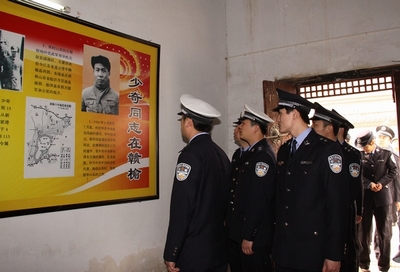 | 天地有正气,杂然赋流形,下则为河岳,上则为日星。 ————文天祥《正气歌》 清明之际,为缅怀革命伟人和公安英模,激发广大公安民警忠诚为党、无私为民的战斗激情,4月1日,赣榆县公安局组织青年民警前往抗日山烈士陵园和刘少奇旧居,开展“缅怀伟人承浩气、祭扫英烈铸忠诚”主题教育活动。 英模面前怀崇敬 ![]() ![]() 烈士陵园内,青年民警手握一束束菊花缓步前行,熠熠闪亮的警徽在青山绿树中显得格外神圣。徐利生墓冢前,他们怀着无比崇敬,一鞠躬、再鞠躬。面对无悔的往事、无憾的人生、无言的英雄,让我们把英雄的故事传诵,让我们踏着英雄的足迹勇往前行…… 纪念碑下温誓词 ![]() ![]() 抗日山上,纪念碑前,青年民警们敬献花圈,深切悼念为中华民族伟大复兴而英勇牺牲的革命先烈,先烈的丰功伟绩,激发起青年民警爱党、爱国、爱民的无限情怀。山谷里,回荡着《人民警察之歌》铿锵有力的歌声,响彻着入党入警掷地有声的誓言,坚定着民警奉献敬业的信念…… 伟人旧居承浩气 ![]() ![]() 在赣榆县黑林镇大树村,青年民警环立在刘少奇同志旧居周围,倾听革命老人讲述刘少奇同志的丰功伟业:就是在这穷乡僻壤,他组织群众开展了轰轰烈烈的减租减息运动;就是在这土炕油灯前,他撰写发表了《关于群众运动》、《党内斗争问题》等重要文章;就是在这泥墙茅屋内,他发动穷苦农民建立起第一个农民组织“职工会”。虽然时光已经流逝,但他的朴实的作风、坚定的信念、深邃的思想,依然为全体民警展现了爱民之深、为民之诚、藏民于心的不朽历史画卷。 品读红书话忠诚 ![]() ![]() 为迎接建党90周年,赣榆县局在赣榆县公安机关开展“唱红曲、读红书、征红文”系列活动,一首首脍炙人口的歌曲,一段段回肠荡气的故事,一篇篇饱含斗志的征文,压缩了现代警务与党的历史在时间、认知、情感上的距离。座谈会上,青年民警踊跃发言:论执法、议现状、谈理想、话忠诚。 |