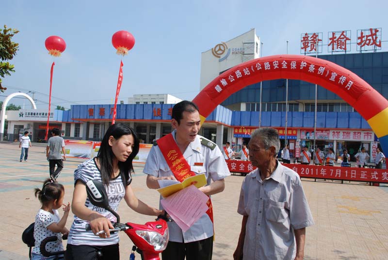7月1日,以“增强公民爱路护路意识,服务公众安全便捷出行”为主题的赣榆公路站《公路安全保护条例》宣传月启动仪式,在县城汽车北站广场拉开帷幕。当日上午,该站通过设立咨询点、悬挂气球标语、制作宣传展板、散发宣传材料等形式,广泛宣传条例,共发放宣传材料4000余份,接待群众咨询千余次。![]() 《公路安全保护条例》自2011 年7月1日正式实施。为扎实做好条例的宣传工作,该站在组织全体干部职工培训、学习的基础上,多渠道、多形式进行广泛宣传。一是在《今日赣榆》报纸显著位置登载《条例》宣传窗,开设“公路安全保护条例知识问答”专栏,在县电视台黄金时间走字幕。二是印制条例宣传“口袋书”、宣传材料等,出动宣传车上路宣传,发动执法人员到镇、进村、入户散发,邀请新闻媒体报道,制造宣传声势。三是利用电信大屏幕宣传《公路安全保护条例》。四是召开座谈会,邀请司法、宣传、建设等部门领导来站座谈,听取他们对公路工作的意见和建议。五是在国、省干线交通观测架上悬挂过街横幅,向过往行人、车辆宣传。六是在南、北客运站利用固定宣传栏进行宣传,在办公场所及路政大厅电子屏幕进行宣传。通过一系列活动的开展,广泛深入地普及公路安全保护知识,营造良好的社会舆论氛围。 ![]() |