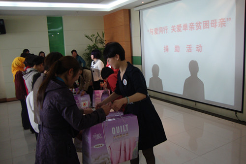 5月14日,由县红十字会、县妇联、青口镇党委联合举办的“与爱同行——关爱单亲贫困母亲”活动在青口镇人民政府会议室隆重举行。县红会副会长王穆兰、县妇联主席董自芳、青口镇党委副书记卢玮出席活动,来自赣榆县各镇的妇联干部、巾帼志愿者、青口镇10名单亲贫困母亲以及红十字志愿者代表参加了活动。活动由县妇联副主任科员顾绍华主持。 县妇联主席董自芳首先发表讲话,她借用“孟母三迁”的故事论述了“母亲”的伟大社会角色,强调了和县红十字会联合举办这次活动的意义;并通过典型事例,鼓励单亲贫困母亲勇敢面对挫折,增强生活的信心和勇气。县红会副会长王穆兰发表了热情洋溢的讲话,向与会人员报告了县红会近年来的工作情况,介绍了“扶贫救心”、“小天使基金”等红十字特色工作,传播了红十字运动相关知识。针对此次捐助活动,她表示,县红十字会将一如既往地和各级社会组织合作,在力所能及的范围内救助更多的弱势群体,在奉献自身绵薄之力的同时,希望能够唤起社会各界对弱势群体的广泛关注。 活动现场,与会领导向单亲贫困母亲代表发放了由县红十字会捐赠的价值3000元的物资,并送去了母亲节的问候。 卢玮代表青口镇党委致辞,充分肯定了此次活动的意义,并对县红十字会、县妇联表示感谢。(王谷强) |