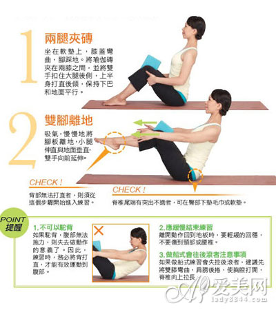 很多人明明体重不重,可是身材看起来确是变形的,身上的肉全是软趴趴的……被称为“肉松妹、泡芙妹”,其实,体重的数字不重要,曲线体态才是最重要的!下面小编给大家介绍常见的4种变形身材,以及相对应的4组瑜伽伽动作,运用毛巾、瑜伽砖、瑜伽垫等做为辅助工具,就算是没学过瑜珈的女孩也可以做到哦。减重+塑身,一次搞定!![]() 4组减肥瑜伽 ★ 按摩肠胃 → 船式&半船式 这动作结合「船式」与「半船式」,两者动作皆能紧实腹部肌肉,对想消除小腹、大肚腩的人相当有效。各自能刺激到的器官则不同,船式会按摩到肠胃,消除胀气;半船式的功效是针对肝、胆、脾等脏器活化。准备怀孕的女孩们可多练习此动作,可以预防怀孕容易造成的下背不适。 小编说:腹部训练非常有效,四种变形类型都很适合~不过一定要做好暖身、调整好呼吸,一开始没办法做好动作的不要勉强,慢慢练习,以免过度伸展而受伤喔! 1、坐在软垫上,膝盖弯曲,将瑜伽砖夹在两膝之间,并将双手扣住大腿后侧,上半身打直后倾,保持下巴和地面平行。 2、双脚离地,吸气,慢慢将脚板离地,小腿伸直与地面垂直,双手向前延伸。 |