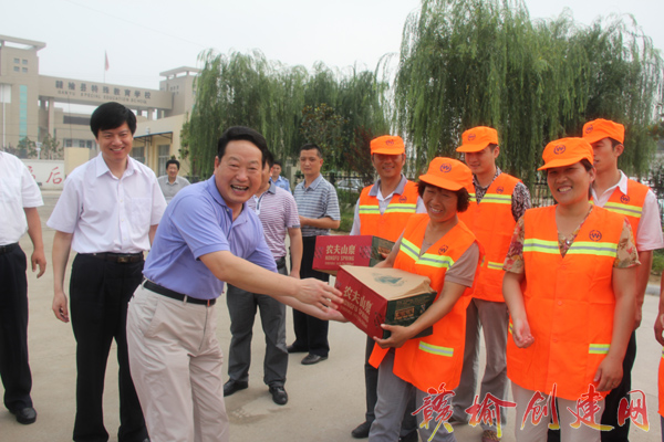 近日,赣榆县总工会开展了以一线职工为主要走访慰问对象的夏季安全“三送”(送法律、送安全、送清凉)活动。县委常委、组织部长邵晓峰、县总工会党组书记、主席杜杰、县总工会纪检组长胡忠民等参加了慰问活动。