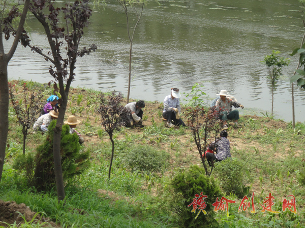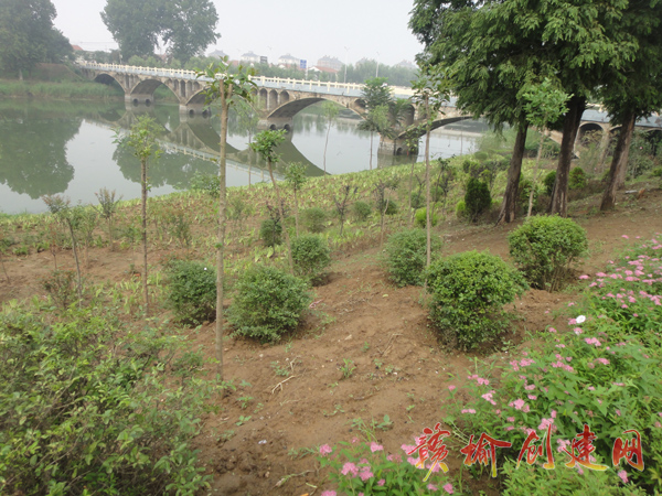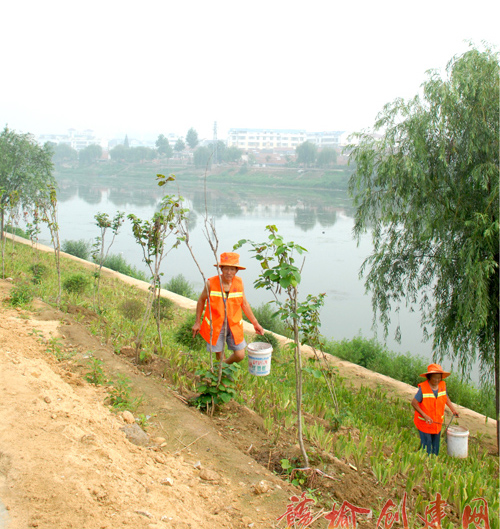 从6月10日到6月底,县建设局投资96万元,按照粗犷型绿化的要求,以低矮黄杨、万年青、紫叶李等为主要品种,对该河段两岸可以绿化的地方进行绿化,绿化总面积约8.7万㎡。加强对绿化的养护,绿化成活率达到70%以上。7月10日以来,组织人员对新绿化苗木进行除草。