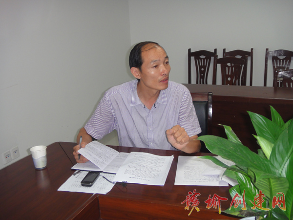 图为县委宣传部常务副部长、县创建办常务副主任王学济主持会议并讲话