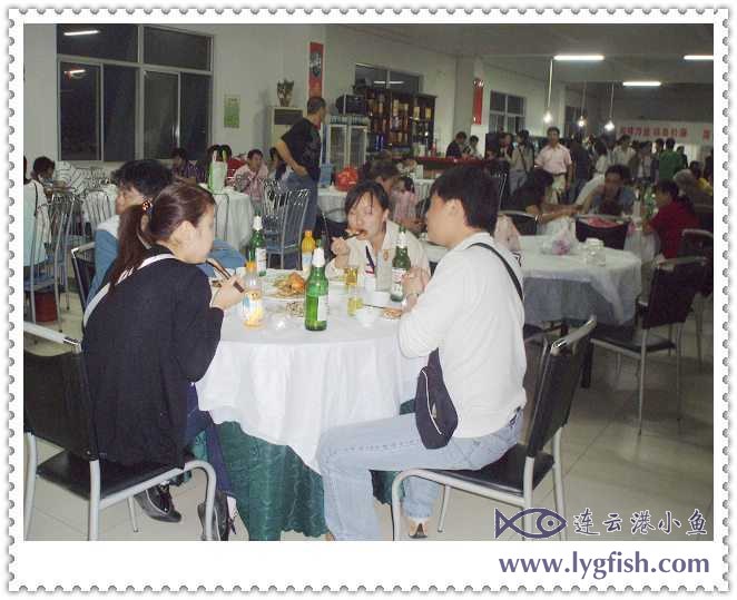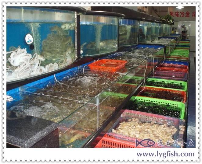 上午我们从西大堤驶向连岛,在阅海楼游玩时,见海滨有一长排海鲜酒楼,心里就打定了主意,晚上就来此地品尝一下连云港的海鲜了。傍晚五点半左右,我们驱车沿着西大堤一直开到尽头,走进了阅海楼海鲜排档。偌大的厅堂里怎么空空荡荡,生意不兴隆?不管它了,先挑选自己的菜肴吧。很长的一溜水族池里,放养着各种海产品,五花八门应有尽有。两个人用餐,只好量少些,好多几个品种来享用。点完菜,回到桌边刚落座,门口拥进一大批食客,水族池边顿时热闹了起来。六点刚过,大厅里已是座无虚席了,幸亏我们早点来啊!