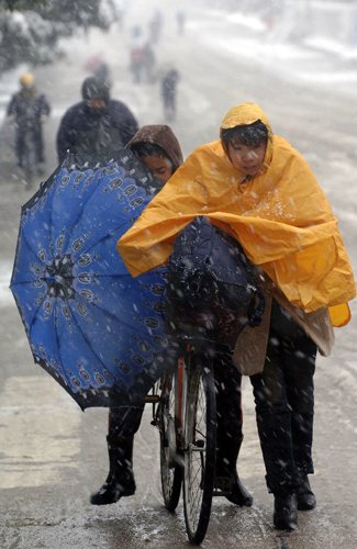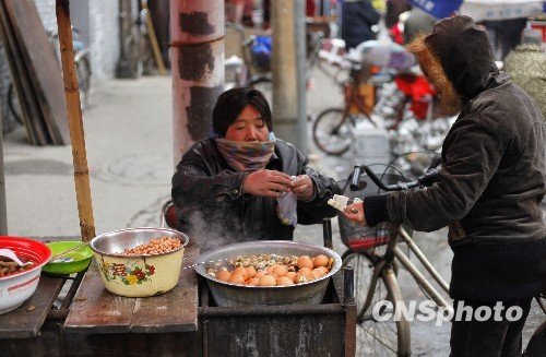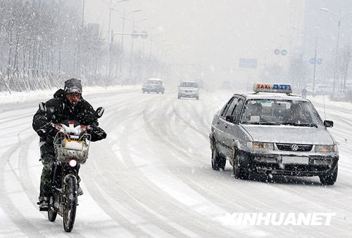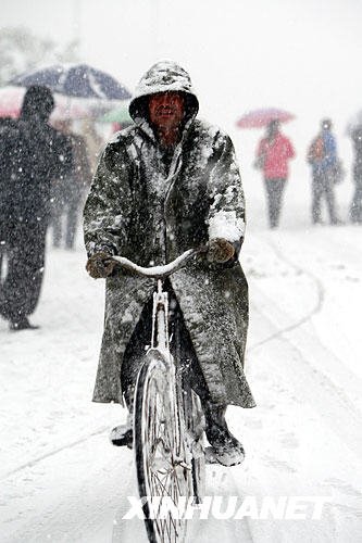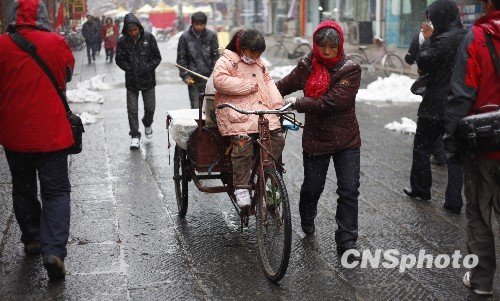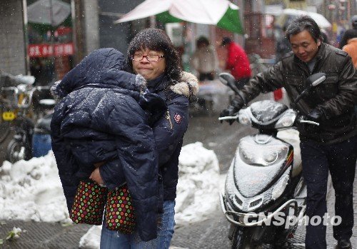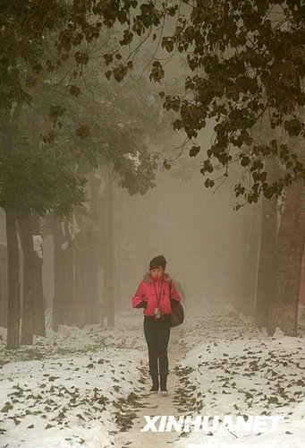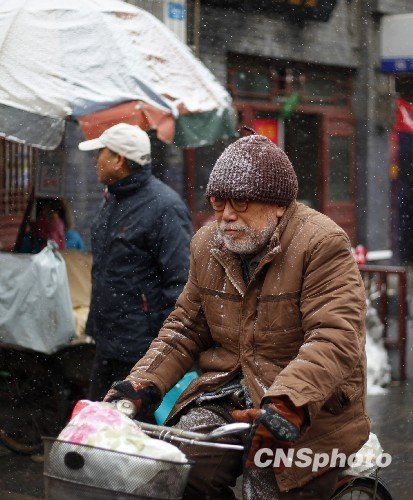 11月15日,洛阳老城。雪花又飘,寒流又至。芸芸众生,步履匆匆。风雪众生相。中新社发 张晓理 摄
